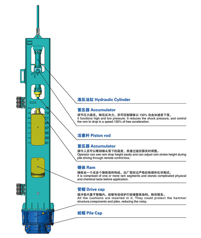 液壓錘可適用于不同類(lèi)型的樁型,并滿足各種工況要求,例如:水泥圓形樁,水泥方形樁,水泥板形樁,鋼板樁,H型樁,鋼管樁等。